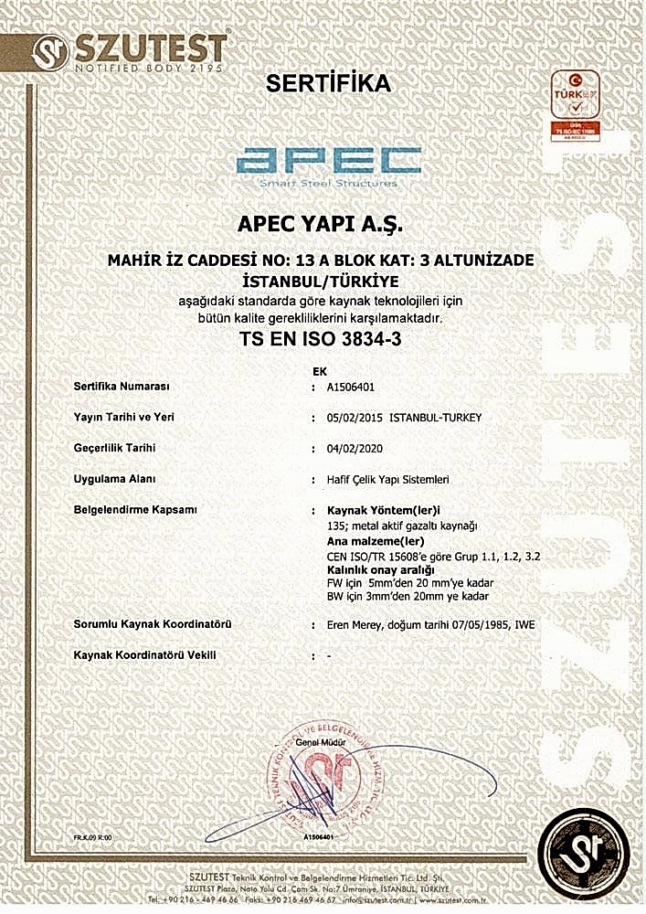 APEC Steel Structure Systems Industry and Trade Inc. was established in 2007 with the belief that it can provide innovative, contemporary, sustainable, and optimum solutions to seismic risks in Turkey and the disadvantages of conventional construction techniques by utilizing steel construction systems widely used in advanced countries around the world. At the Taşköprü Yalova Factory, advanced engineering steel construction products that make a difference are manufactured according to international standards. With 17,000 m² of open and 5,000 m² of closed area, the facilities have an annual production capacity of 2,000,000 m² of closed building area.