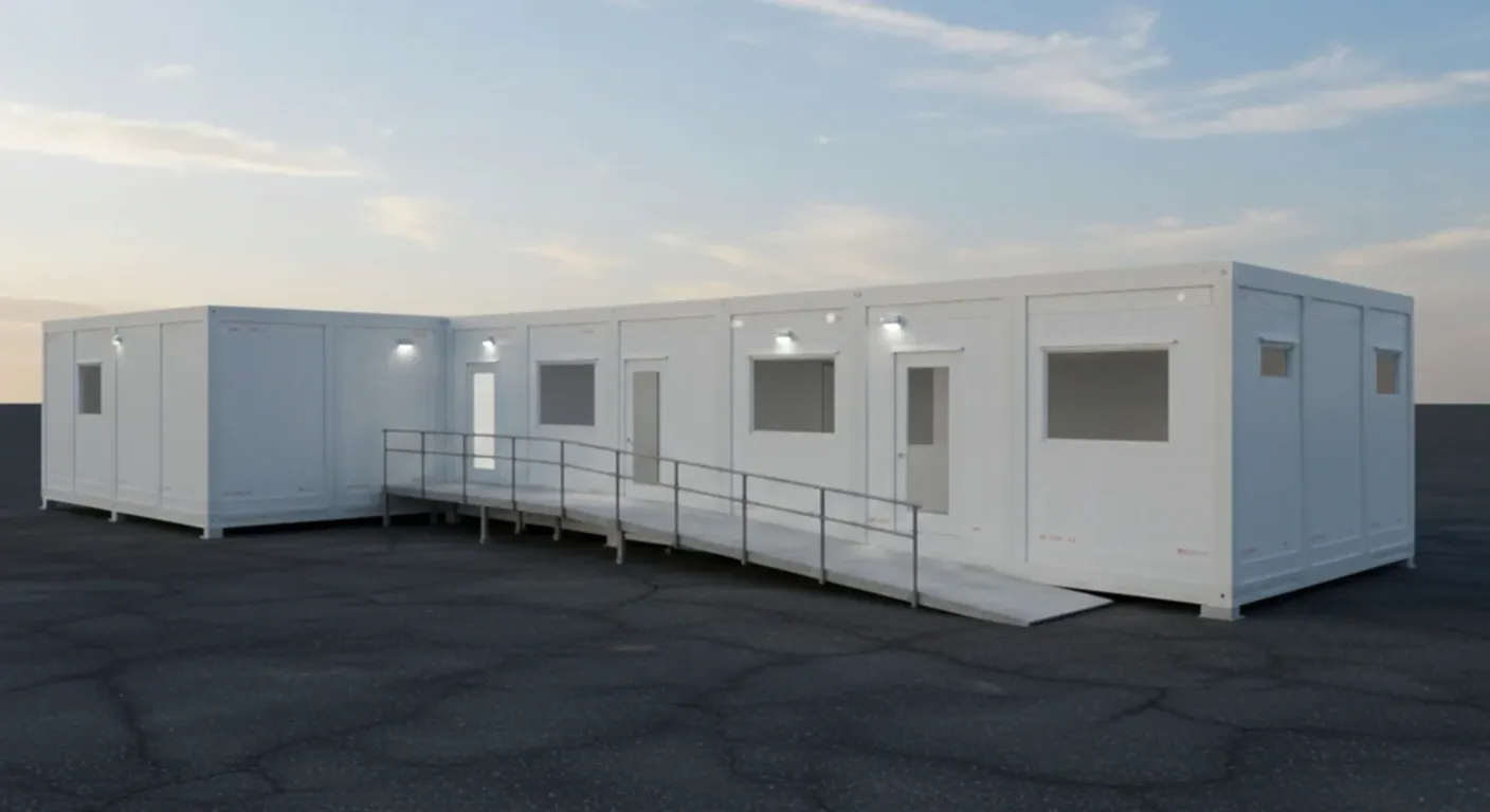 A total of 121 living units were built for refugees to be resettled in Walldorf, Germany. The project, including dormitories, toilets, showers, and dining areas, was completed and put into use within 30 days according to Eurocode and German DIN standards.